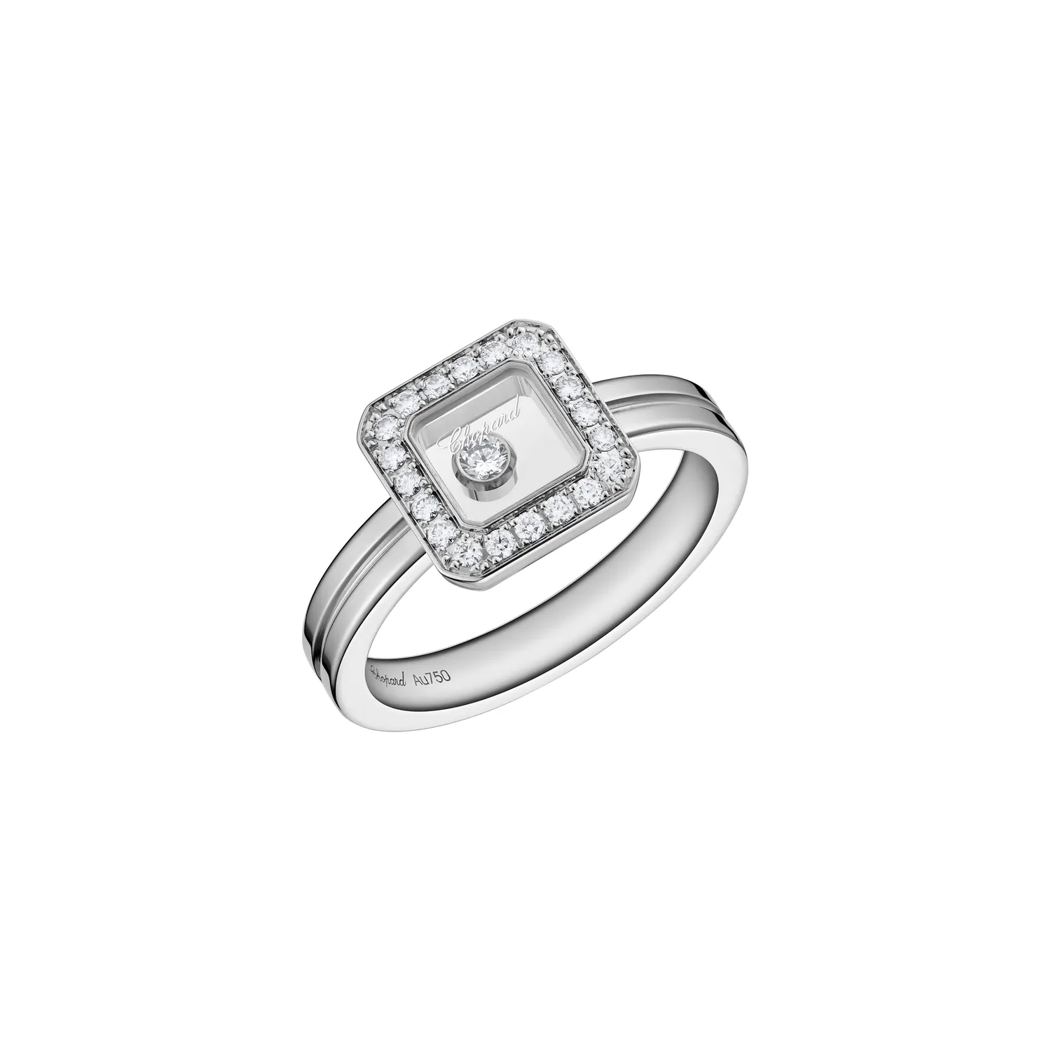 Bague Chopard en or blanc éthique 18 carats et diamants 0,19ct. Collection Happy Diamonds Icons.
