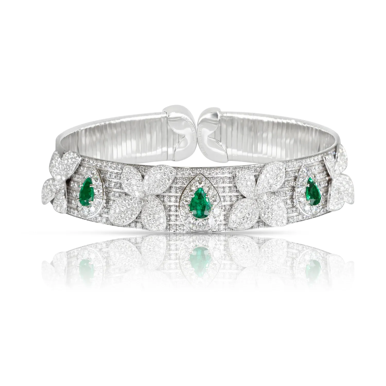 Collier Pasquale Bruni ras-du-cou en or blanc 18 carats avec pendentifs en émeraude et diamants blancs 22,72ct. Collection Heart To Earth.