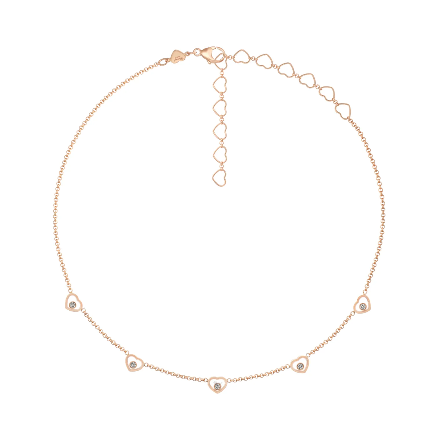 Collier Chopard en or rose serti de 5 diamants blancs flottant (0,25 ct.). Collection My Happy Hearts.