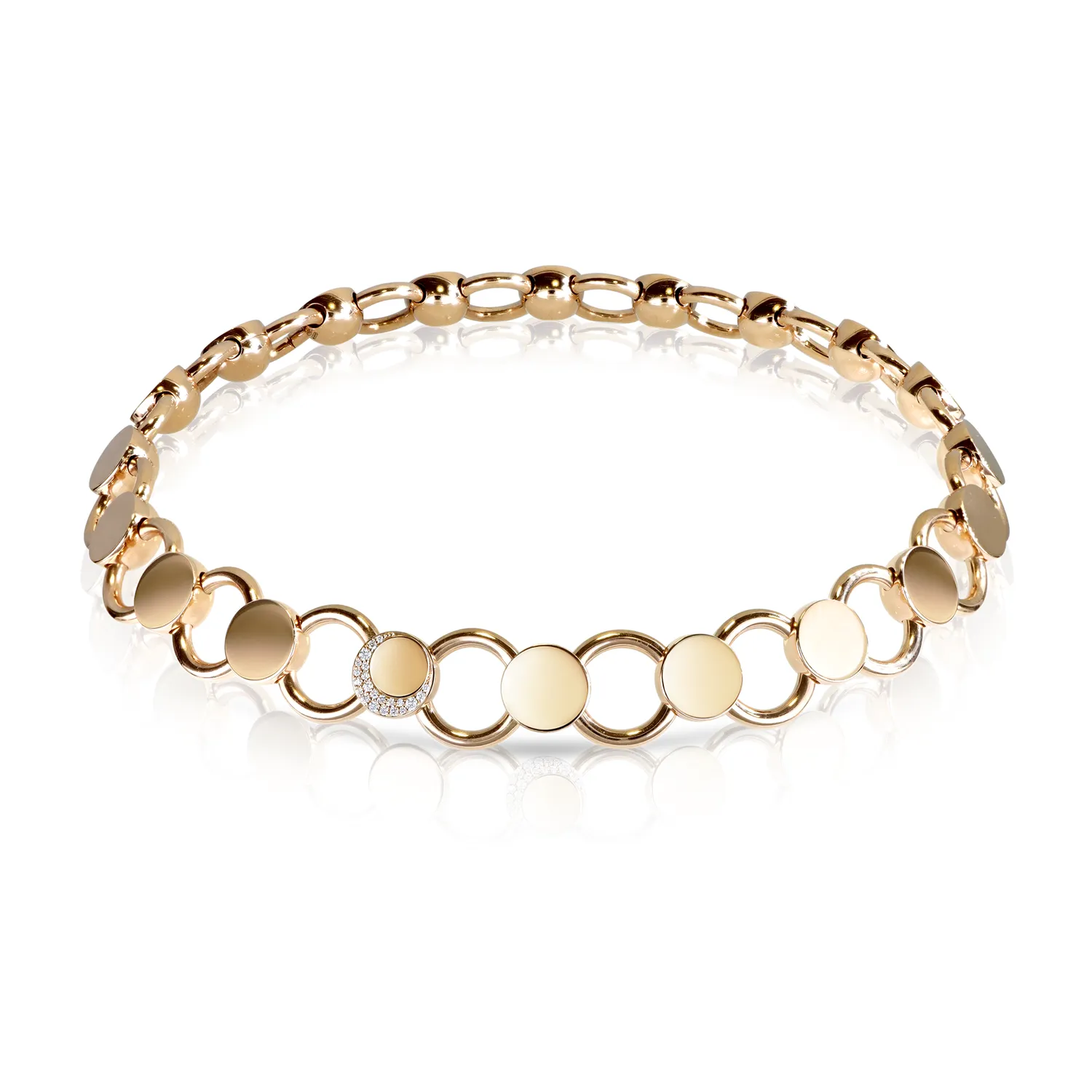 Collier Pasquale Bruni Luce chaîne moyenne en or rose 18 carats avec diamants 0,37ct, rubis dans le fermoir: 0,10 ct. Double port : côté Lune et côté Soleil