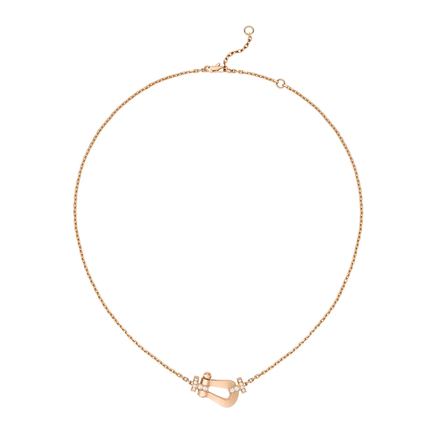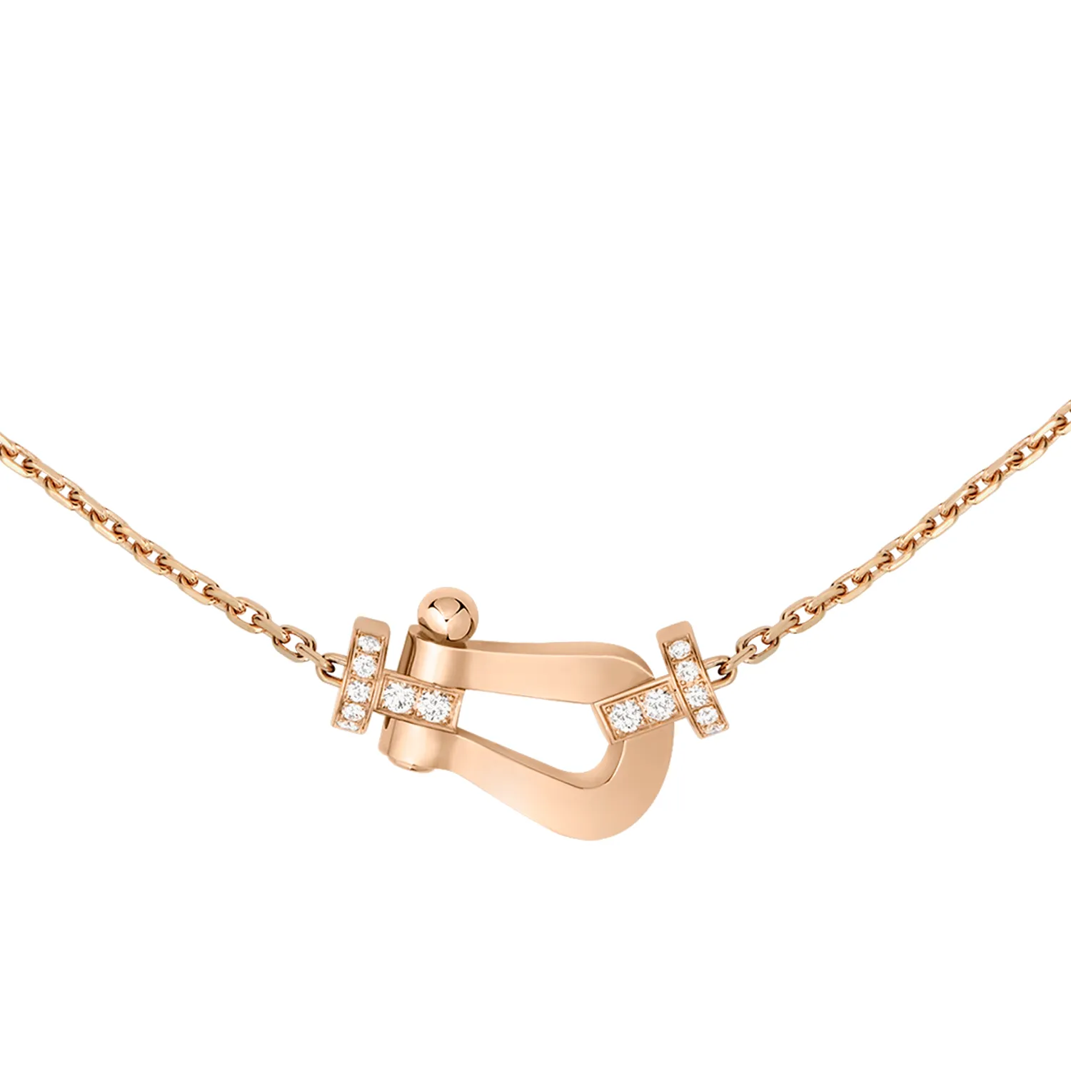 Fred Force 10 Large model necklace, semi-paved pink gold with diamonds
