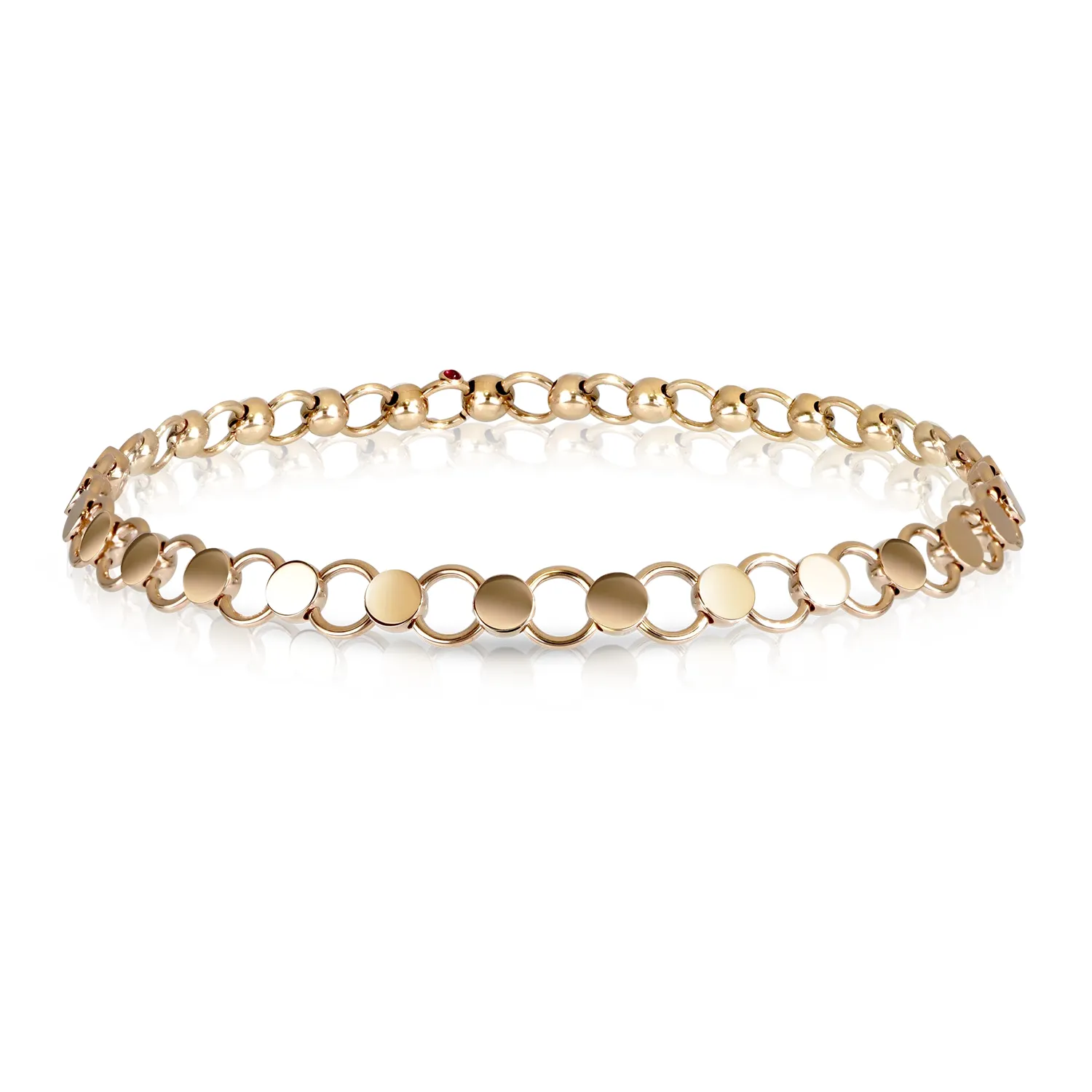Fine chain necklace in 18-carat rose gold with a 0.01 ct diamond. Ruby in the clasp: 0.10 ct. Double wear: Moon side and Sun side