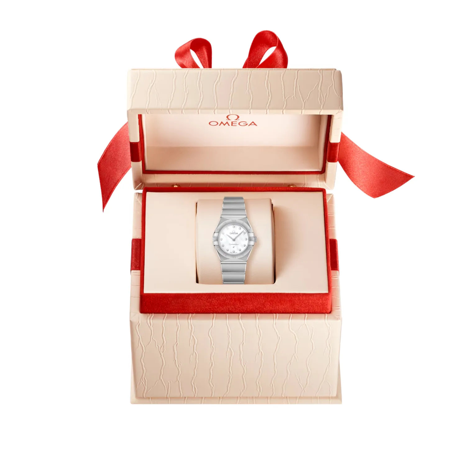 The Omega Constellation (ref. 131.10.25.60.55.001) embodies the timeless elegance of Omega in a refined 25 mm format. Its steel case houses a white dial enhanced by a domed, scratch-resistant sapphire crystal with an anti-reflective treatment on both sides for optimal readability. Powered by the Omega quartz caliber 4061, it offers a 48-month power reserve and is water-resistant to 30 meters. Lightweight and delicate, weighing approximately 70 g, this watch combines precision, sophistication, and durability in a design emblematic of the Constellation line.
